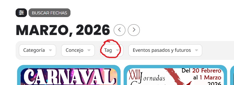 Event type badges (e.g., ”KONCERT”, ”ZABAWA”, ”PŁATNE”) are rendered as styled text without semantic grouping or ARIA role. Their function as categorical metadata is not programmatically determinable.