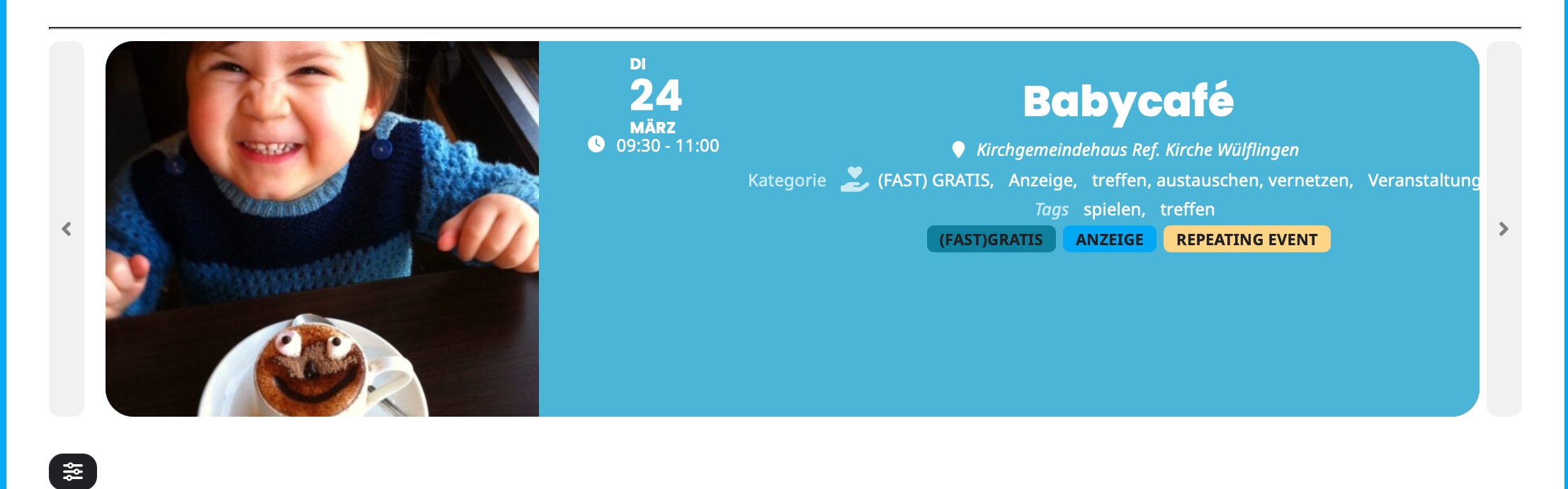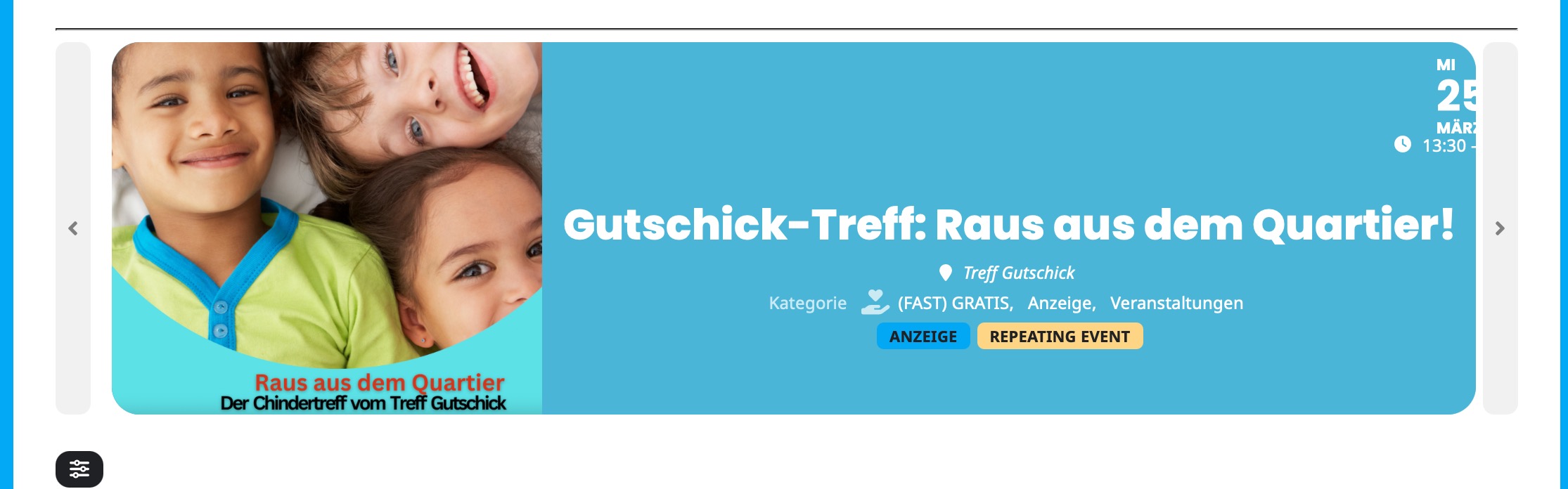 The DOM position of the expanded event detail panel content relative to its trigger element suggests that focus order may not follow the visual presentation. When a user activates an event card, focus does not programmatically move to the revealed content.