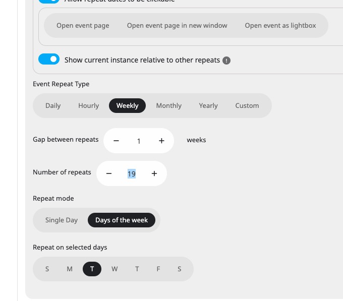 I believe that the number of weekly repeats causes the issue: