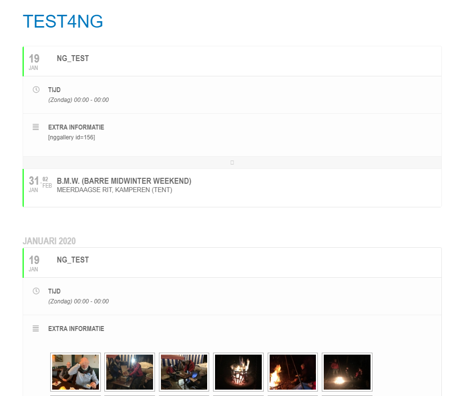 When I enter the below 2 fields of codes into one and the same page then the code “A” – section on that page does not show the gallery pictures but the code “B”- section on that same page does show the pictures. See attached screen-print.