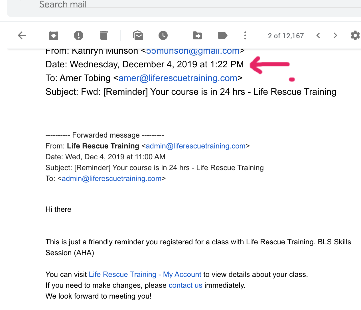 See attached. Student registered for class on December 23rd and you can see by the date below it was sent on December 4th?