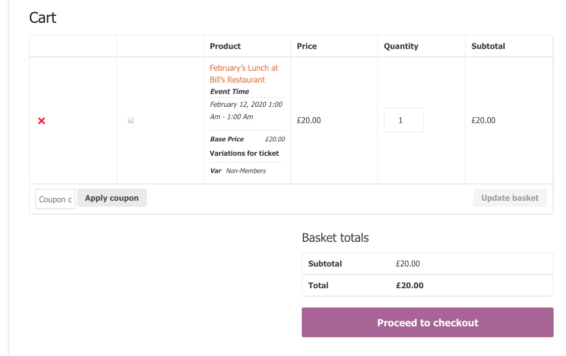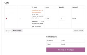i.e. two ticket price variations and then for each ticket the guest can choose a menu option.