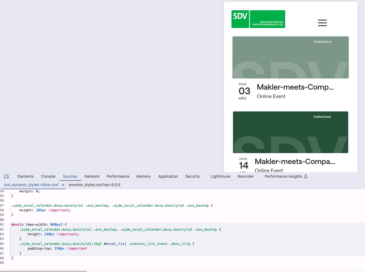 @media (max-width: 960px) { .ajde_evcal_calendar.boxy.boxstyle1 .evo_boxtop, .ajde_evcal_calendar.boxy.boxstyle2 .evo_boxtop { height: 140px !important; } .ajde_evcal_calendar.boxy.boxstyle1.tbg1 #evcal_list .eventon_list_event .desc_trig { padding-top: 150px !important } }