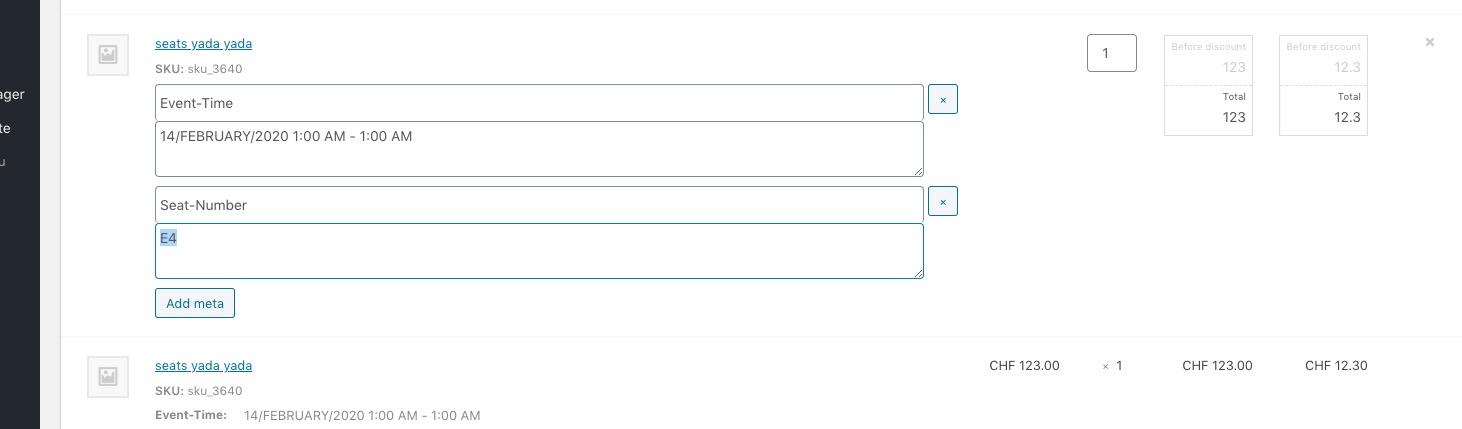 Please go to WooCommerce > Orders > Edit > set Status to On Hold > now you can edit the seat number:
