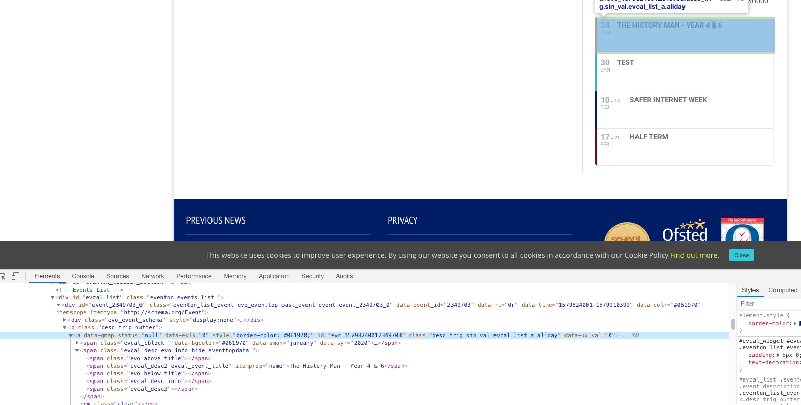 None of your events have Event Category classes in the HTML code: