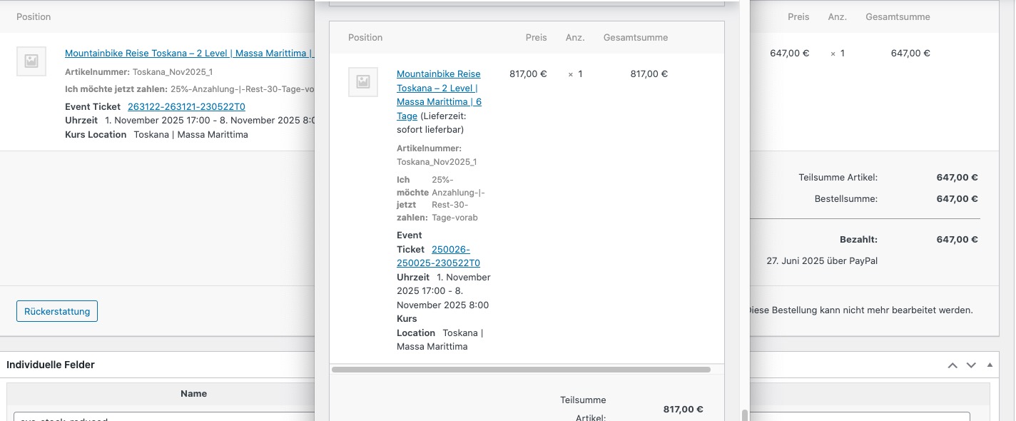 Please take a look at these two orders from the event: