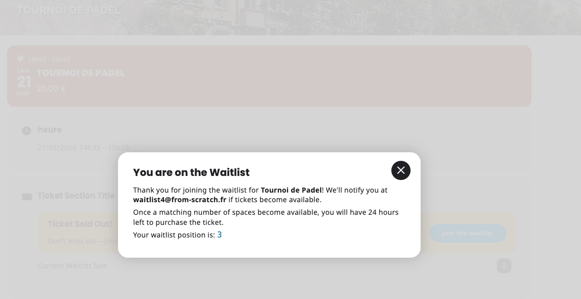 When a ticket becomes available, User #1 in waitlist gets an email.