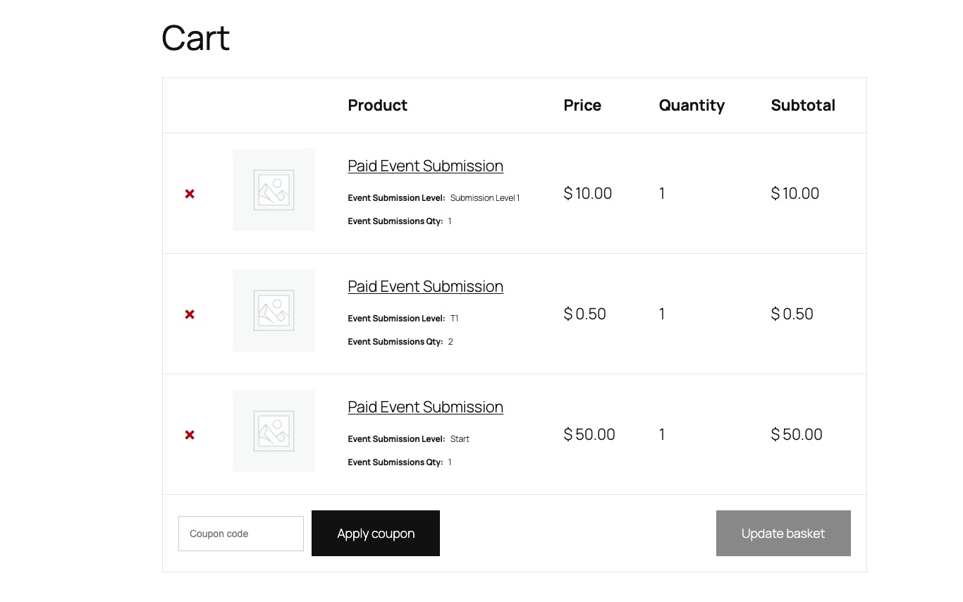 No changes in ”Select Event Submission Type”: