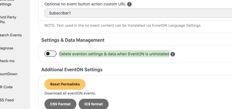 You can update add-ons without worrying about any data, but before updating EventON, make sure to that this is DISABLED:
