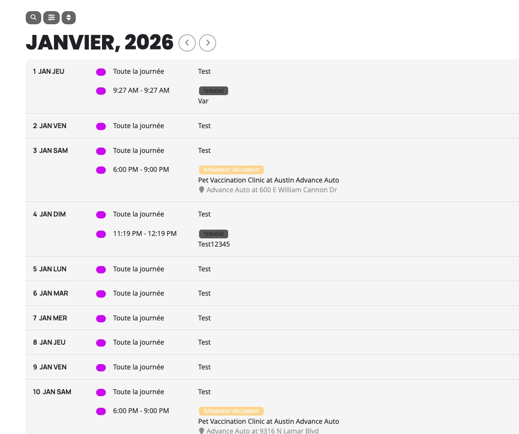 Please try taking a look at Schedule View shortcode: