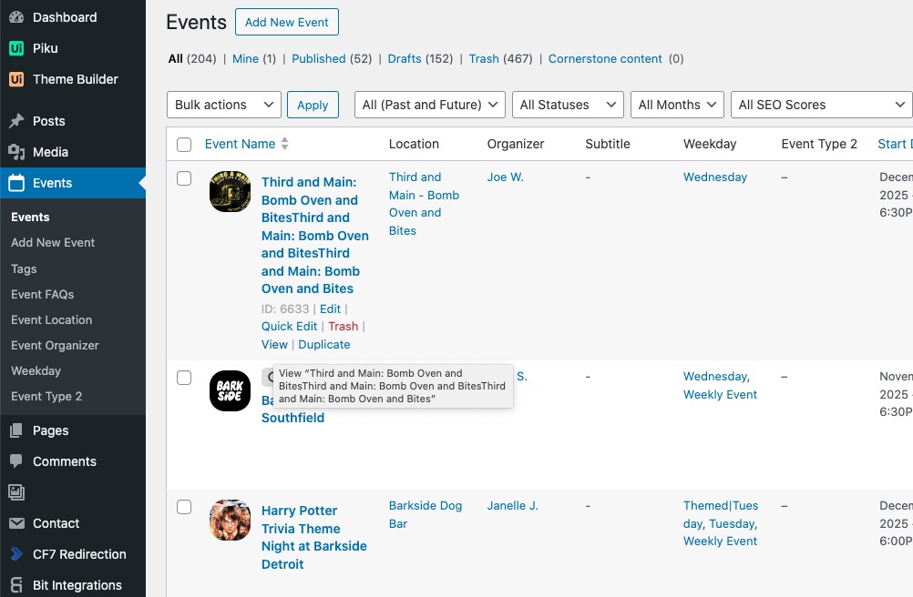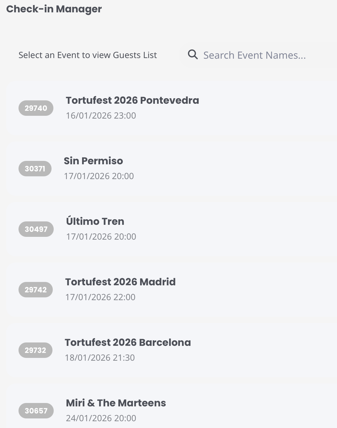 I have version 1.0.2 and I can’t see past events that have already finished. I see that your image is different from mine; on the checkins page, I can only view the lists of events that haven’t happened yet.