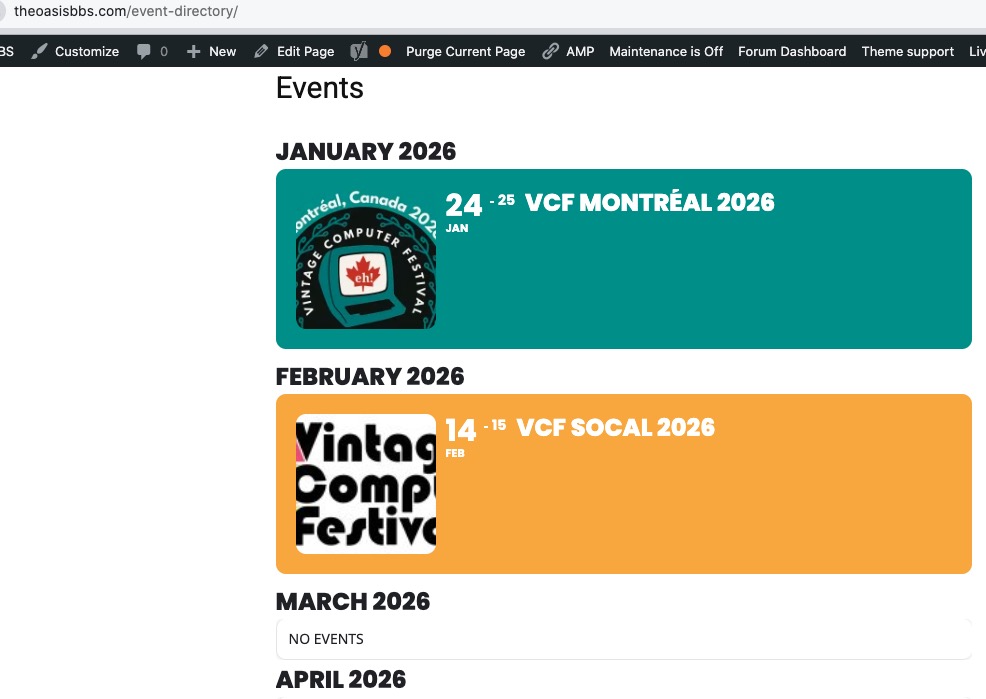Another question, on the calendar page, https://theoasisbbs.com/event-directory/ do you know why January is displaying at the bottom of the page instead of the top?