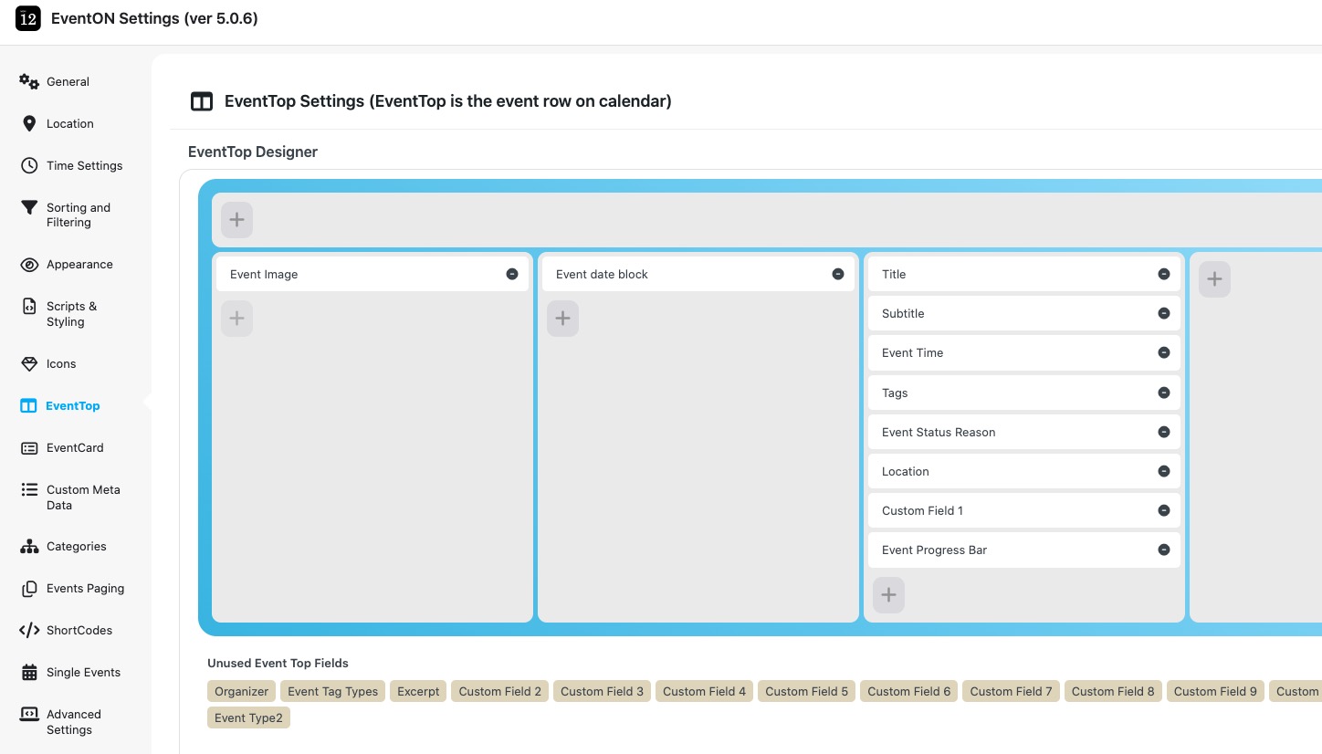 By it’s own design, I meant that you cannot use the same arrangement in EventTop for both Main Calendar shortcode and DailyView.