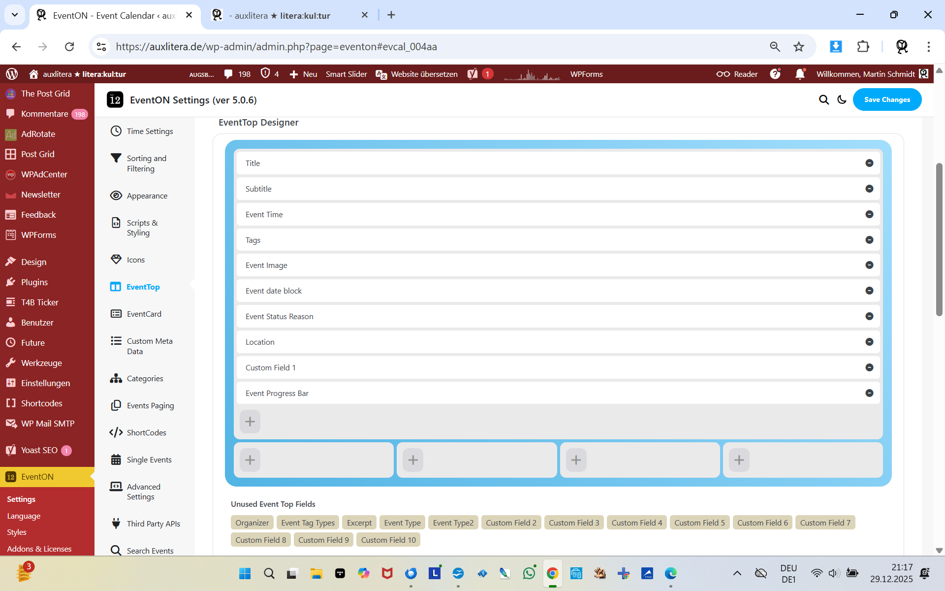DailyView uses it’s own design for EventTop, so please rearrange fields like on this screenshot: