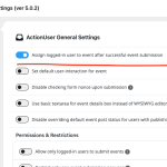 Make sure in actionUser settings > Assign logged-in user to event after successful event submission us turned ON.