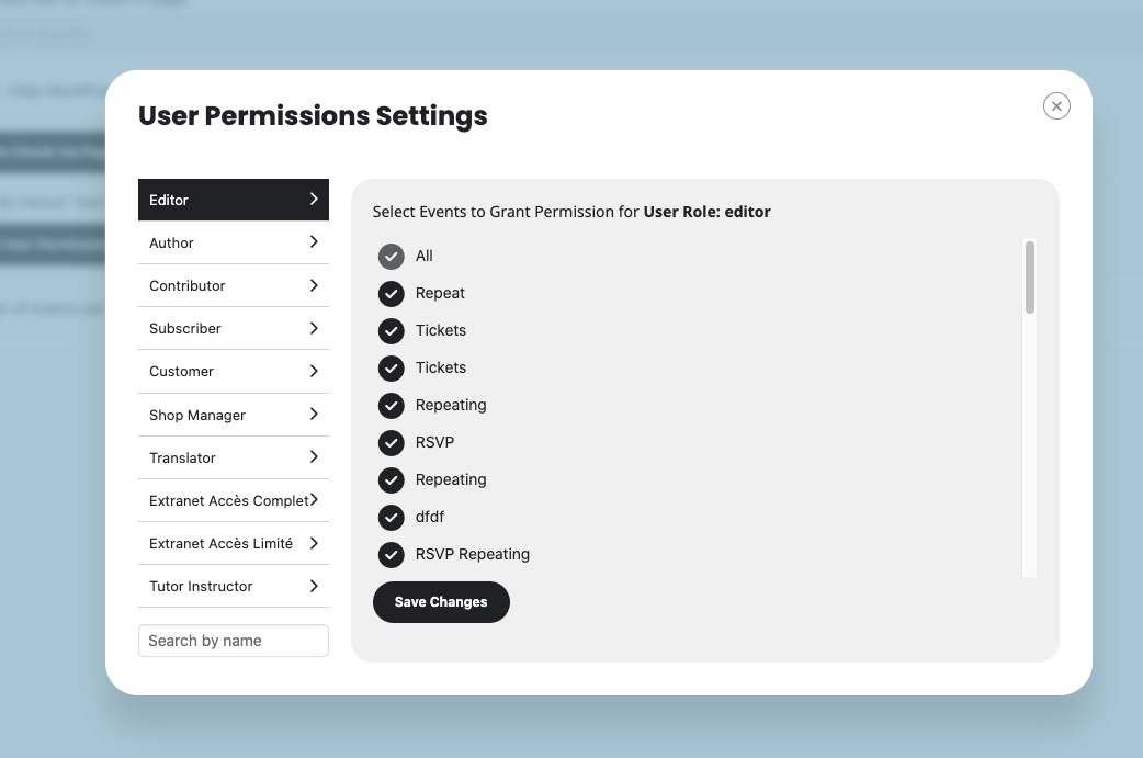 However, if your staff’s role isn’t admin, then you need to go to EventON > Checkins > Edit User Permissions to Checkin > select a role > select All > save: