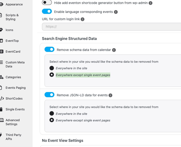 It worked, but will disabling the schema affect the SEO quality of the events?