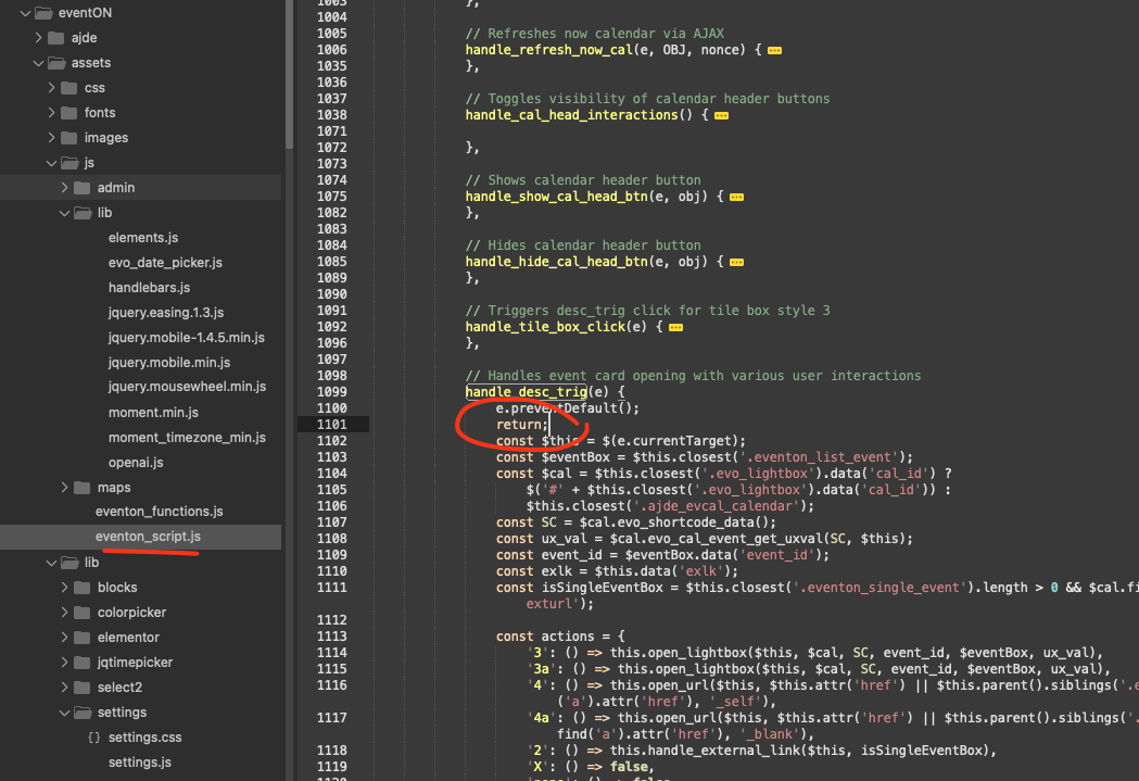 Please try going to EventON > Advanced > try a different Select calendar event content filter type.