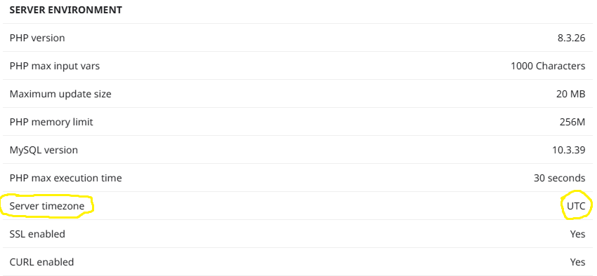 I notice that clicking ‘Load Environment Stats’ in the ‘Diagnose EventON Environment’ tab shows ‘Server timezone’ as ‘UTC’. I have asked our hosting provider to look into this further.
