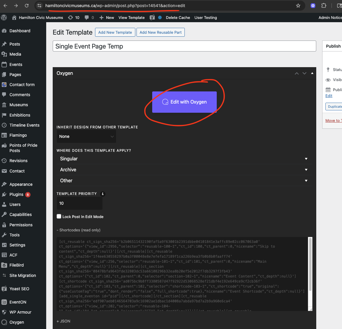 Sam how did you edit the single event template? when I went here: https://hamiltoncivicmuseums.ca/wp-admin/post.php?post=14541&action=edit and tried to edit with Oxygen it does not load the page.