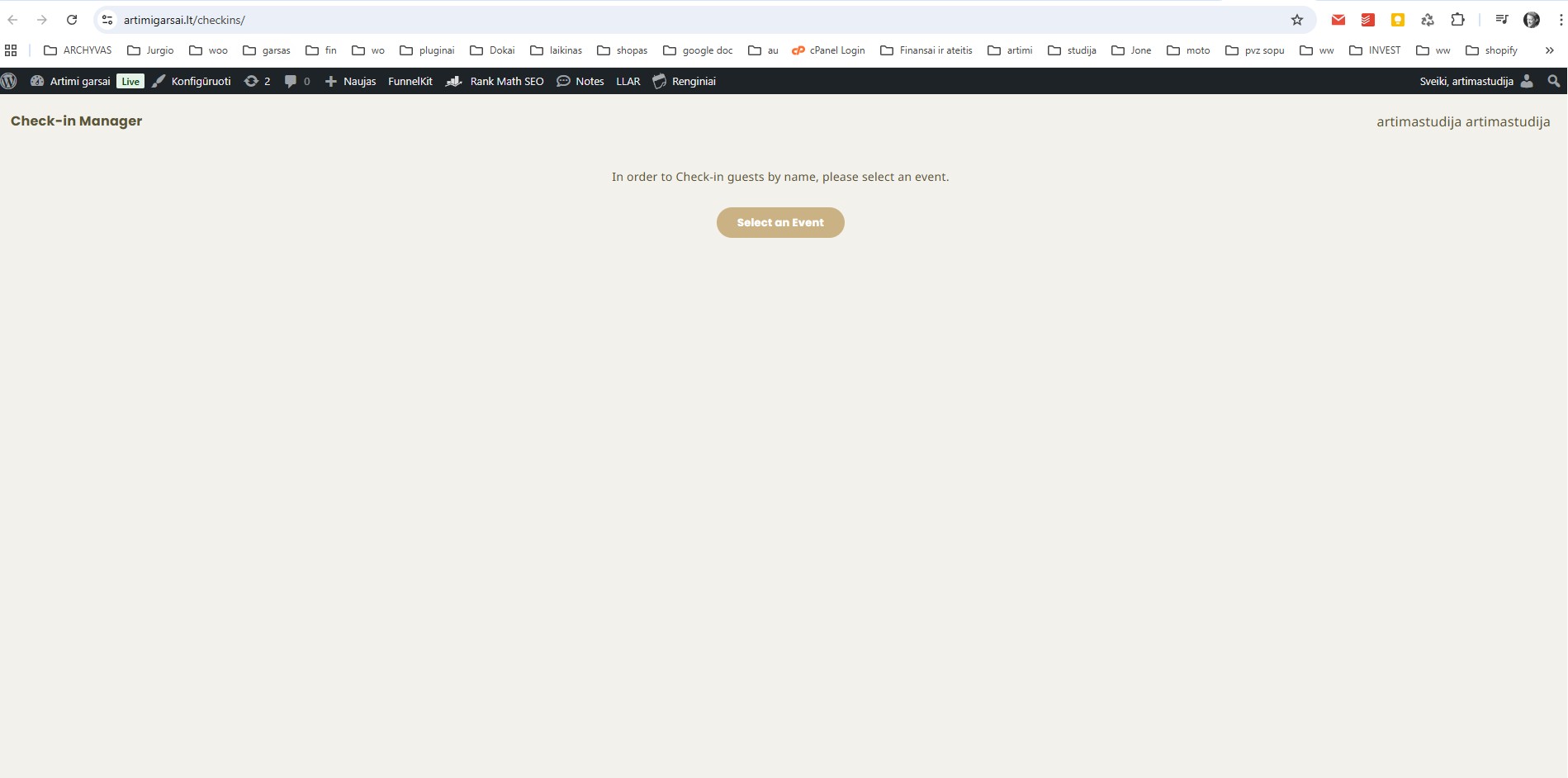 2. More important. I opened checkins page, but not much happening. Pressed on Select an Event. Also nothing. How to solve this? Adding photo. Please help.
