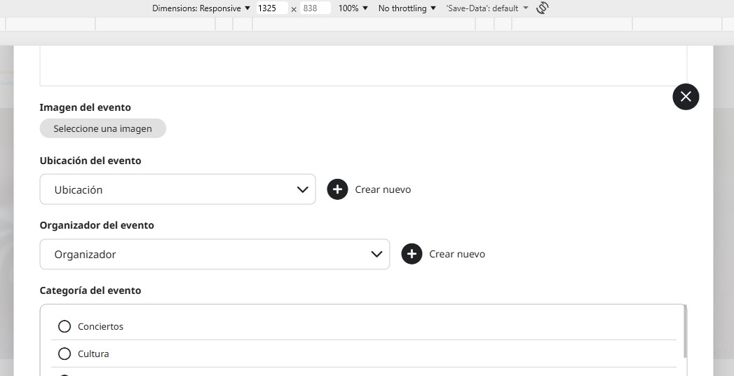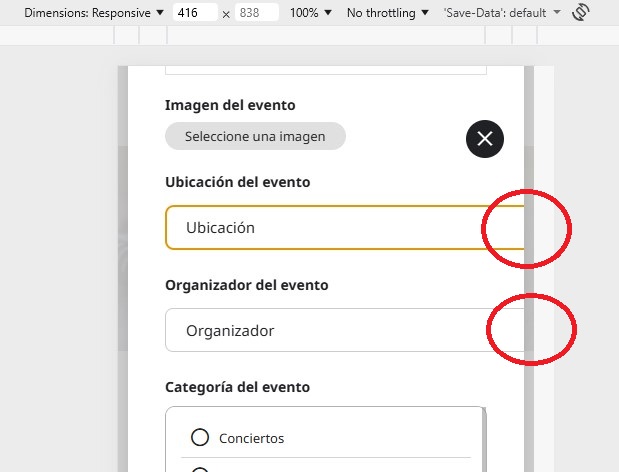 When I send an event from a mobile device, there are two fields that do not appear on the screen. In photo 1 you can see how it should appear and in photo 2 how it appears now on the mobile device. When I access either of those two fields to enter the information, it also appears wrong as seen in photo 3.