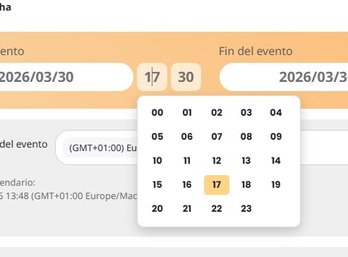 Taking advantage of this, I also wanted to tell you that it would be nice if the times of the dates could be entered in this plugin as in the last Eventon update. See photos 4 (Action User) and photo 5 (Eventon). Thank you so much.