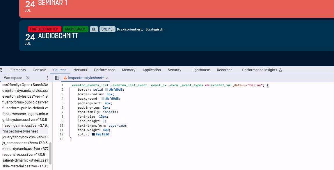 .eventon_events_list .eventon_list_event .evoet_cx .evcal_event_types em.evoetet_val[data-v=”Online”] { border: solid #bfd0d8; border-radius: 5px; background: #bfd0d8; padding-left: 4px; padding-top: 2px; font-family: inherit; font-size: 13px; line-height: 1; text-transform: uppercase; font-weight: 400; color: #001830; }