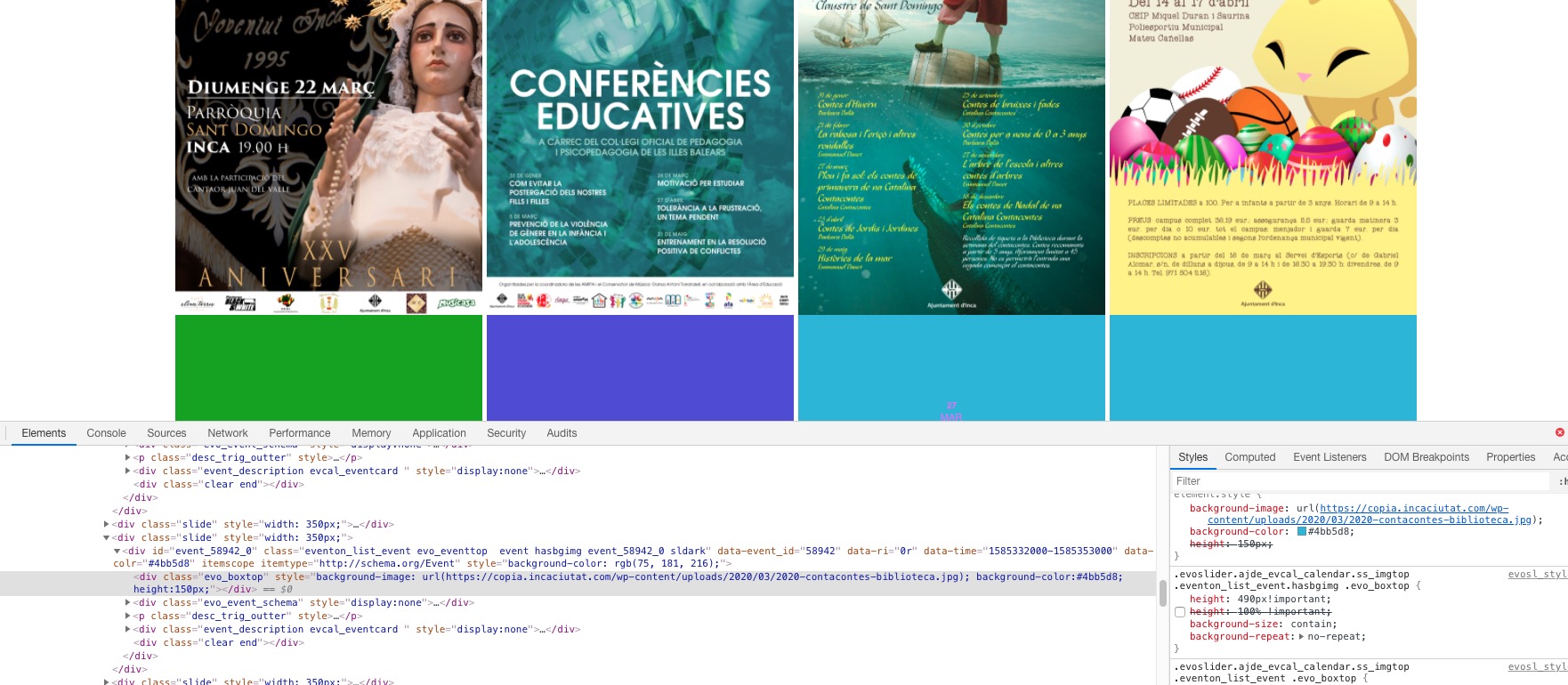 Let me add some screenshots of problem 1 and 2. And let me note that I am working in a copy of the website (in a test website). When I have the event plugin 100% working I will deactivate my license in my test website www.copia.incaciutat.com and I will activate in the real public website www.incaciutat.com installing again the plugin and all… so I would like to know what you did to do it too in original website next.