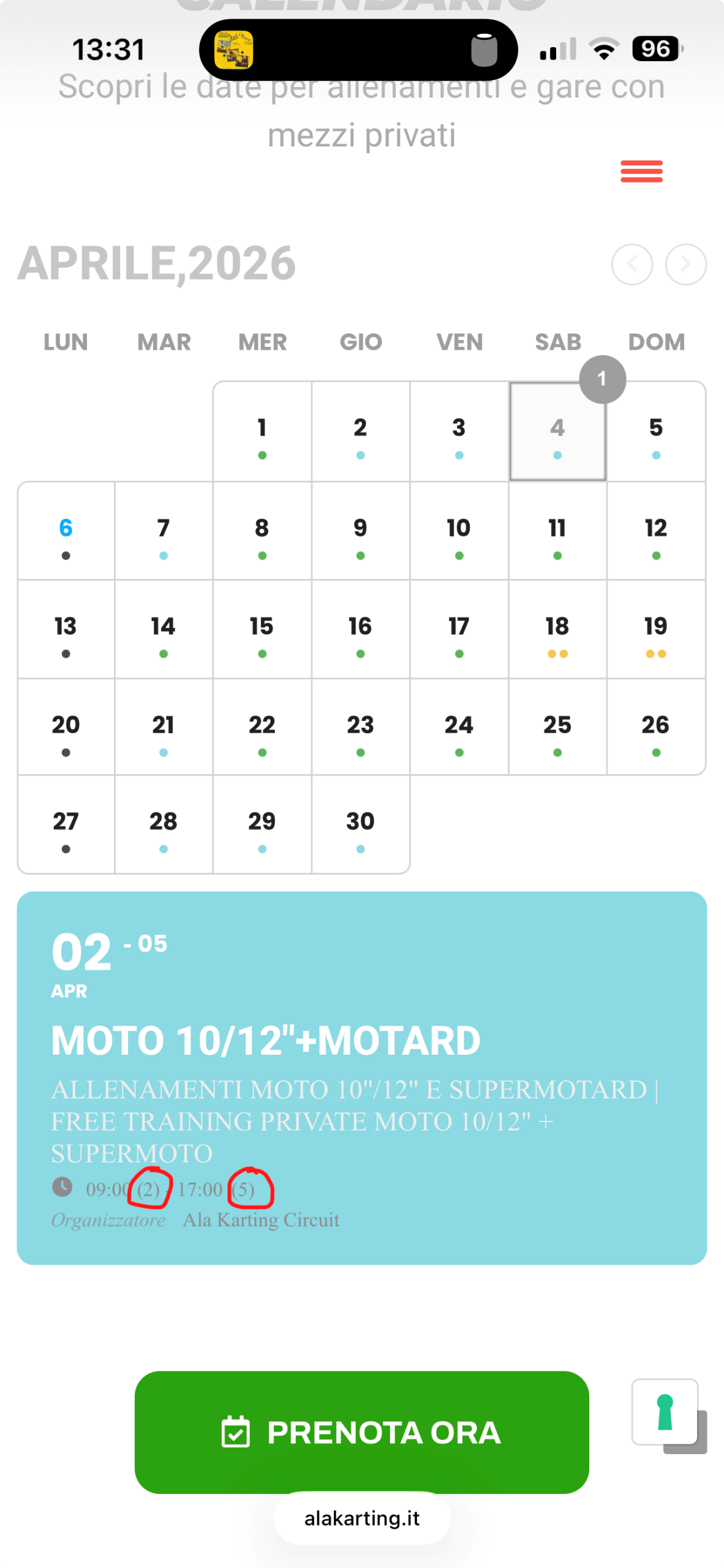Day indication on start and end time of repeating events