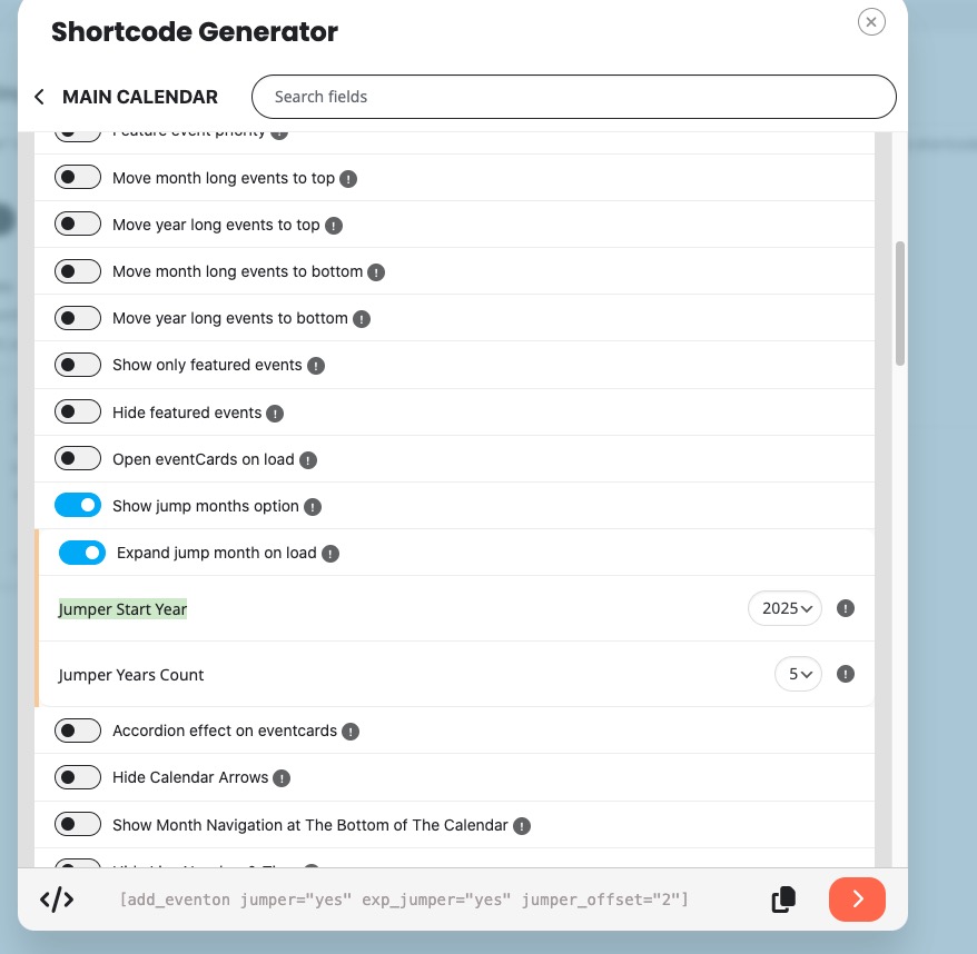 Jumper isn’t available when using Event Lists shortcode, unfortunately.