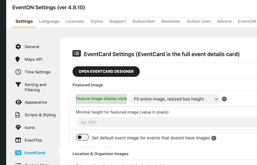 2. Please go to EventON > Event Card > try a different Feature image display style.
