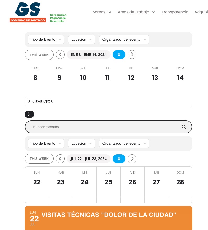 Sure, yes its showing the correct information, but not displaying as it was. It was like screenshot1.png with the events for monday, under monday’s column, events for tuesday under tuesday’s column, and so on. Now I changed the month and week and it’s showing the week with the days as columns but the events full width, not under each day’s column, screenshot2: https://corporacionrm.cl/innovacion/santiago/