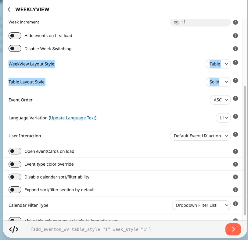 Hi, I just purchase EventOn and the weekly view addon to have a fixed week showing for an specific event that lasts a week. I'm doing different tests, but the weekly view test is showing me the current week not the one I chose. The main calendar does shows the fixed week. I also want to have on the weekly view the filters shown by defalut as I have set on the main calendar, but it is not working either. Please let me know what I'm doing wrong, thanks