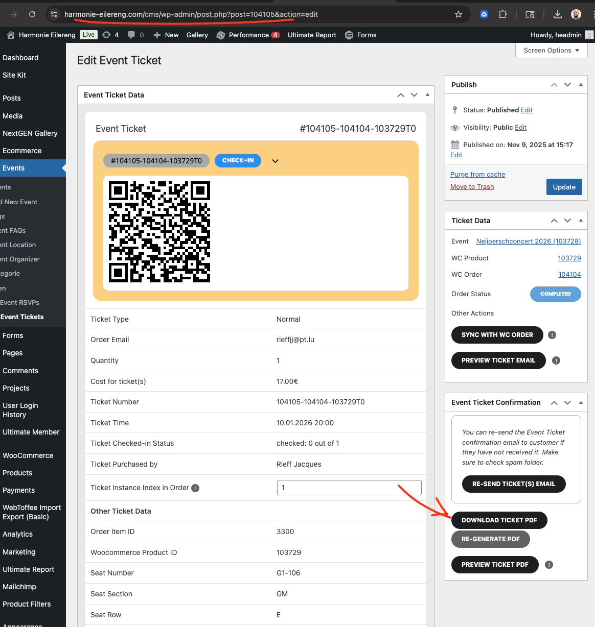 You can check the WOOCOMMERCE Ticket Order Ids: