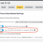 My WordPress time, like my computer, is set to UTC +1. Let’s say I set an event at 8PM UTC. If I click on “display event in my time zone” it will show correctly that the event will start at 9PM. If I add it to calendar, the calendar shows 9PM. But when the clock turns 8PM (my time zone) it’s displayed as live, although it would actually start an hour later.