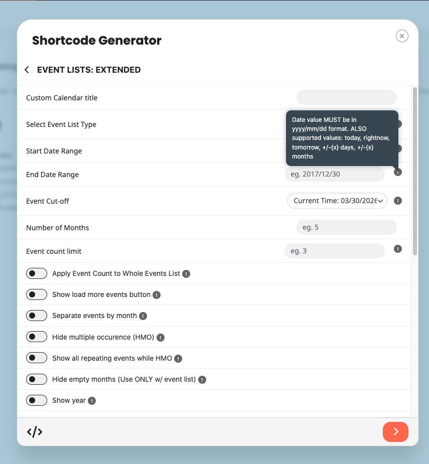 So is there a way to have a short code so the calendar display let say next 45 days (or any number of days) upcoming events so the calendar gets about the same numbers at all time?